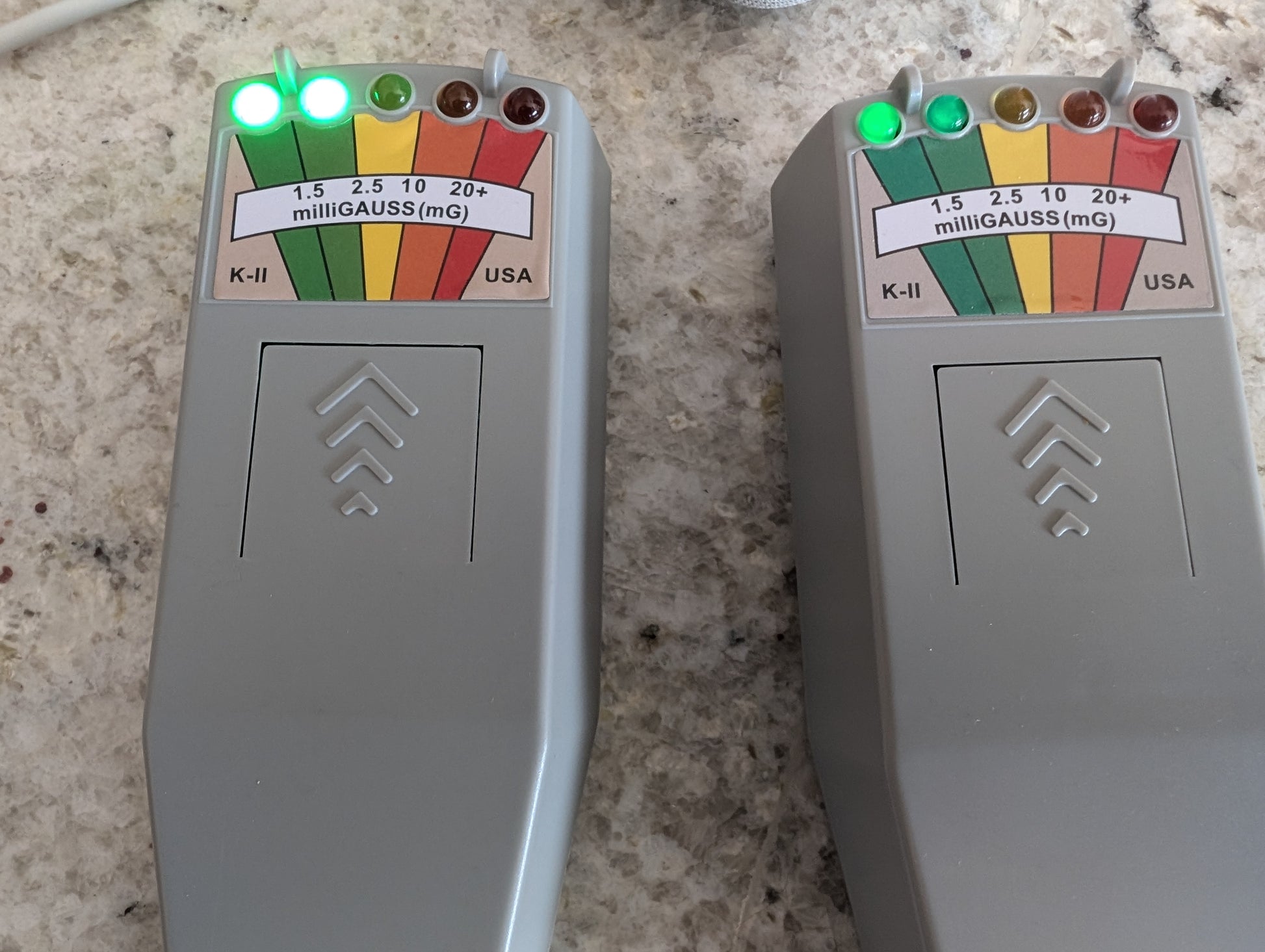 These K2 EM meters we have in our tour cases for public events. These reads EM fields with a 5 LED progression