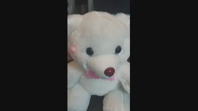 8 inch white sitting bear with zipper back to access electronics